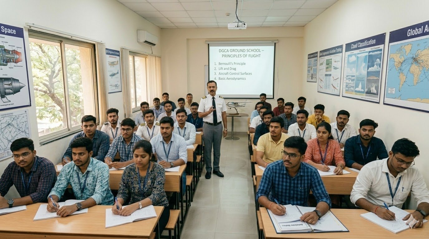 Learn aviation theory in our DGCA ground school. A good grasp of subjects - Navigation, Meteorology, Regulation, etc., is essential for a pilot licence.